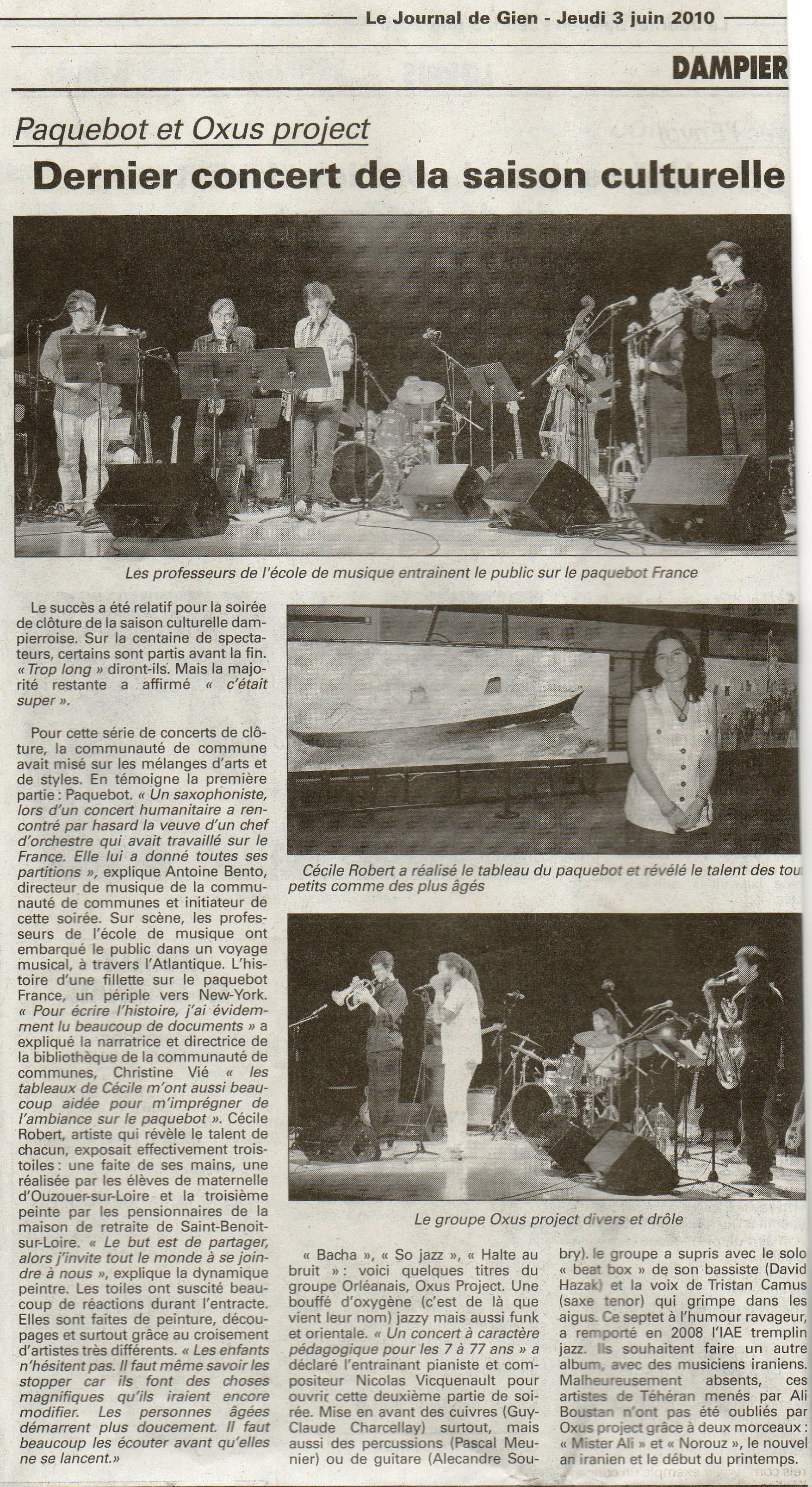 Samedi 29 mai a eu lieu à Dampierre en Burly la présentation du projet Paquebot France suivi du concert Oxus project.
