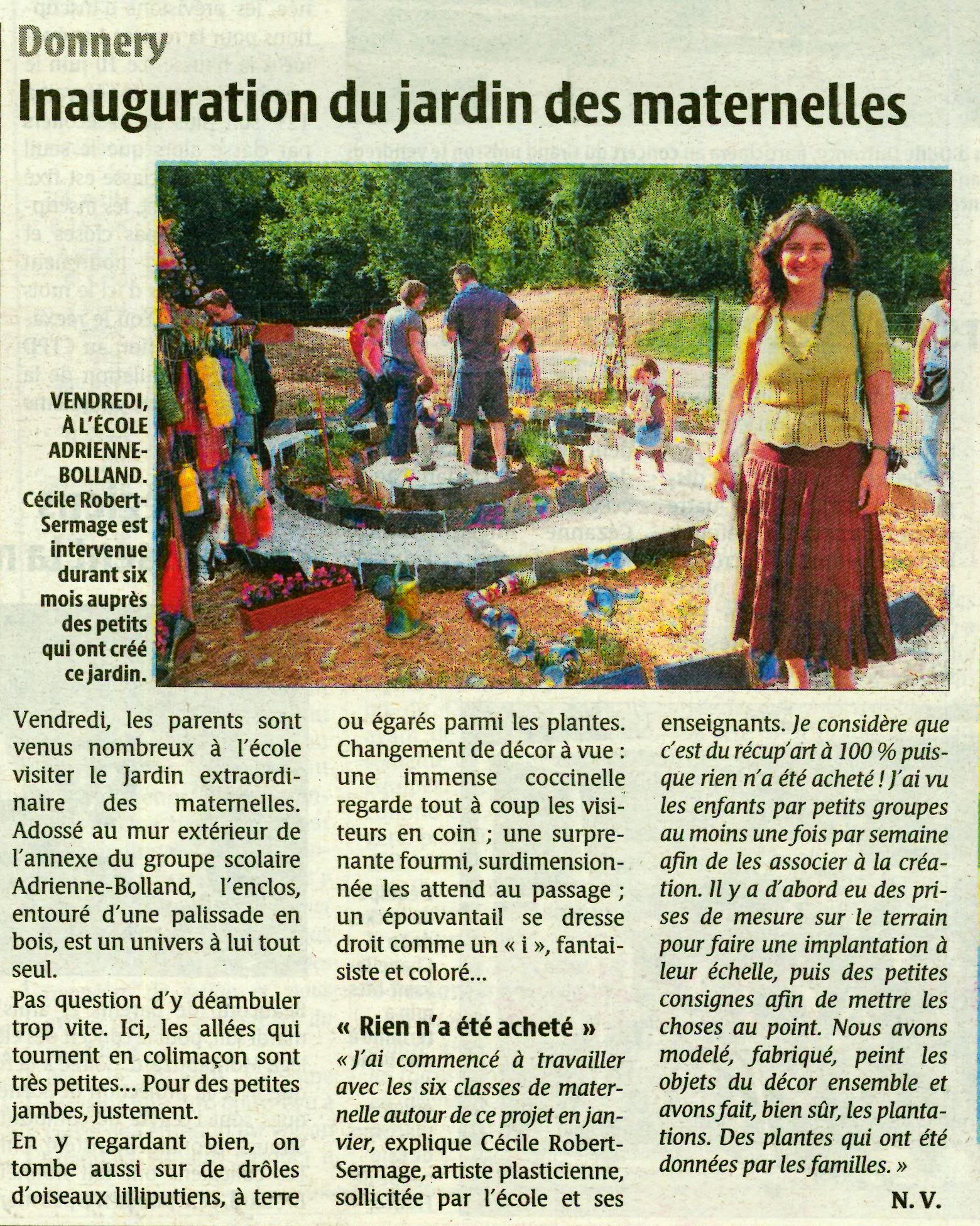 Un joli projet recycl’Art inauguré le 11 juin 2010, suite à un an de travail avec les classes de l’école maternelle. Un escargot à taille « enfant » dans lequel on peut rentrer, se perdre et se régaler de découvertes.