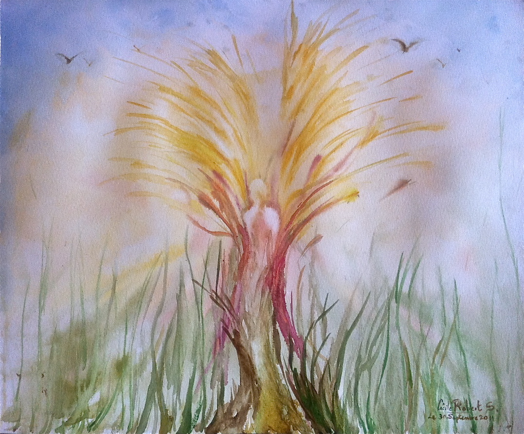 Aquarelle réalisée pendant sa venue au monde vendredi dernier.