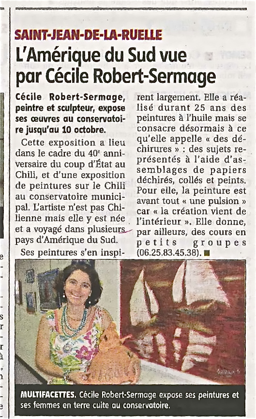 Article journal (précision: née au Chili, oui, je suis chilienne aussi, ainsi que française) Merci à la République du Centre et à Mr Moulin pour l’article 🙂