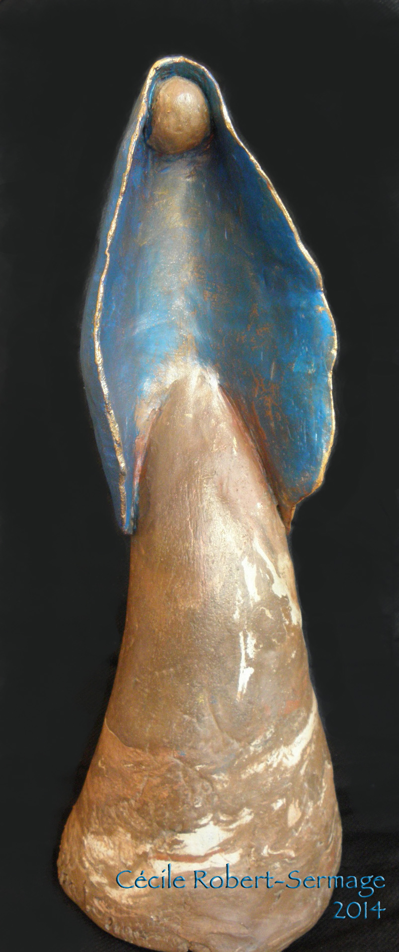Et pour suivre dans la demande d’Isa, un échantillon des « réflexions en bleu et or » avec trois oeuvres de compositions différentes: une terre cuite, pour rester dans la lignée, une huile et une technique mixtes peinture/collages.