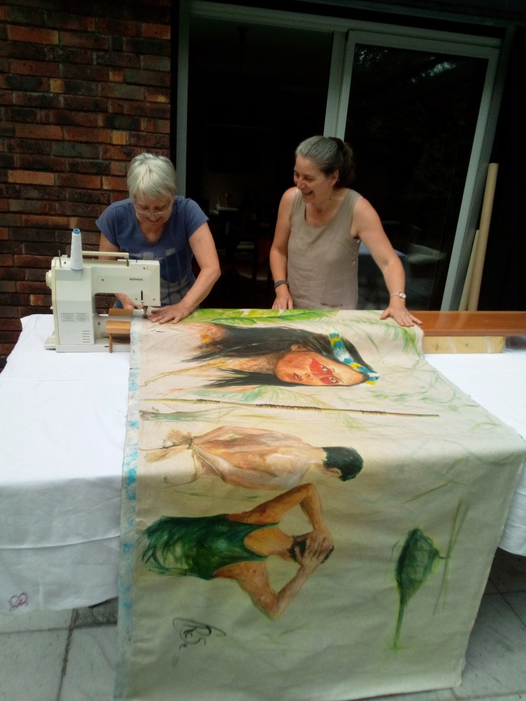 Préparations des « duos » de toiles. D’un côté l’histoire de Jeanne, de l’autre celle de Zane.