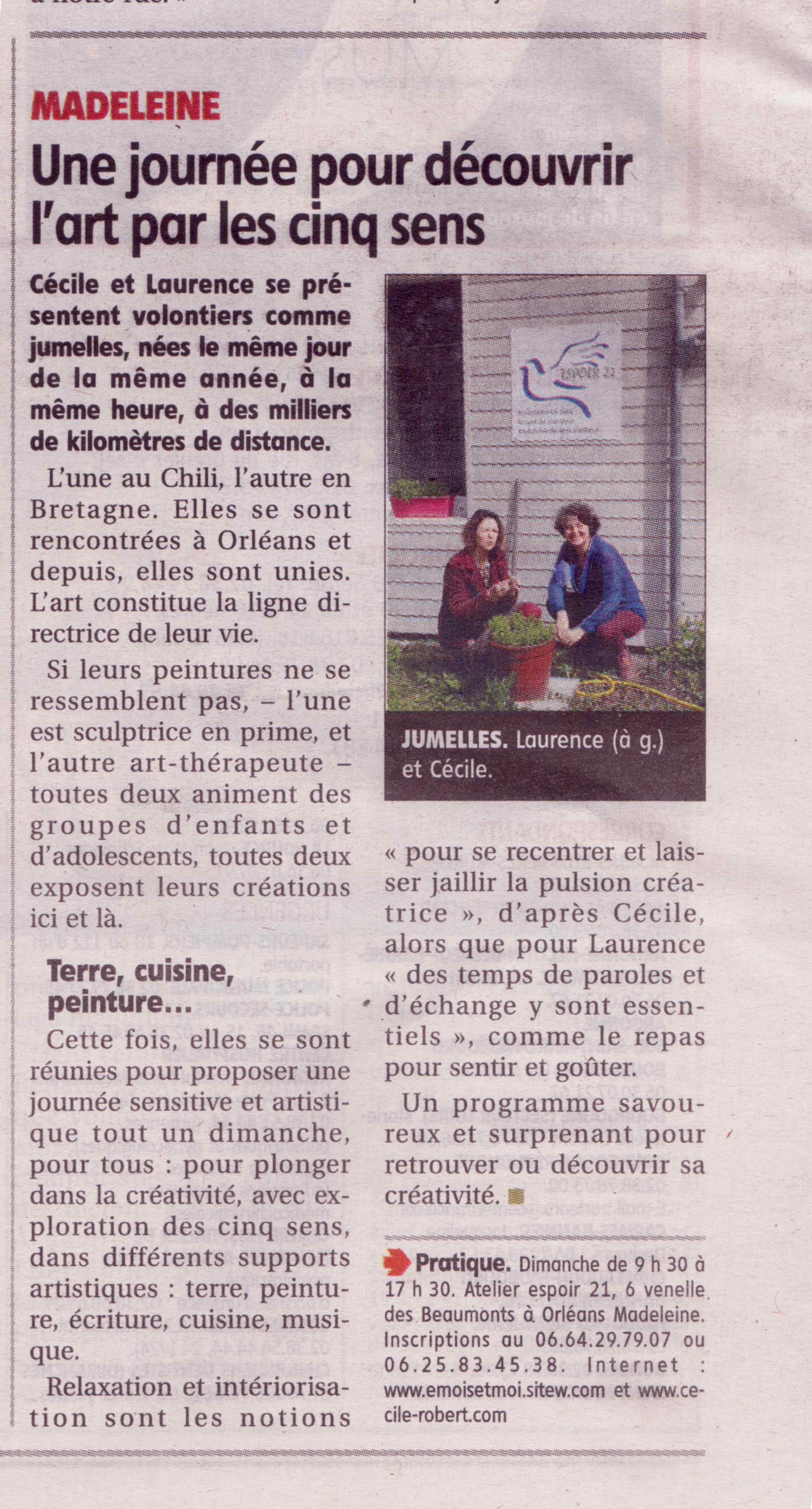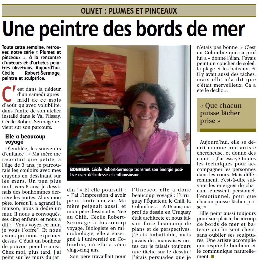 Cécile Robert-Sermage Artiste peintre et sculptrice. Article de La République du centre. 17 Aout 2016