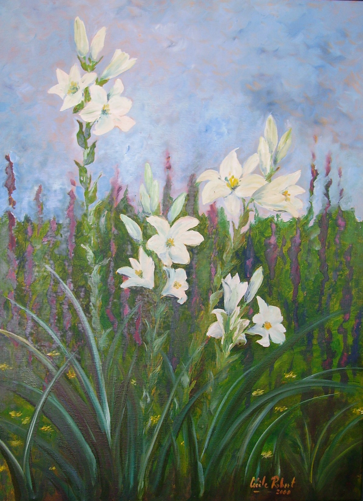 H28 « Fleurs de la terre pour un ciel » Donnery2000. Huile sur toile 70×95 cm